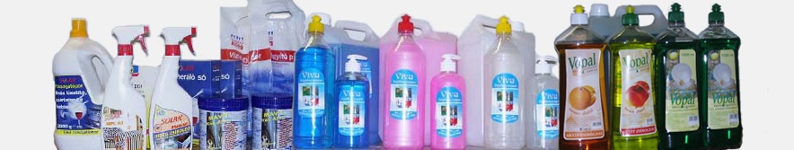 Termékeink: folyékony tisztítószerek, folyékony szappanok, mosogatószerek, általános tisztítószerek, WC-tisztító gél, padló felmosó és ápolószer, hidegzsíroldók, kárpittisztító, csempe- és fúgatisztítószer, vízkőoldó, folyékony súrolószer, tiszítóporok, color mosópor, fehérítő hatású mosópor, zsírtalanító por, vízlágyító porok, mosogatópor, regeneráló sók